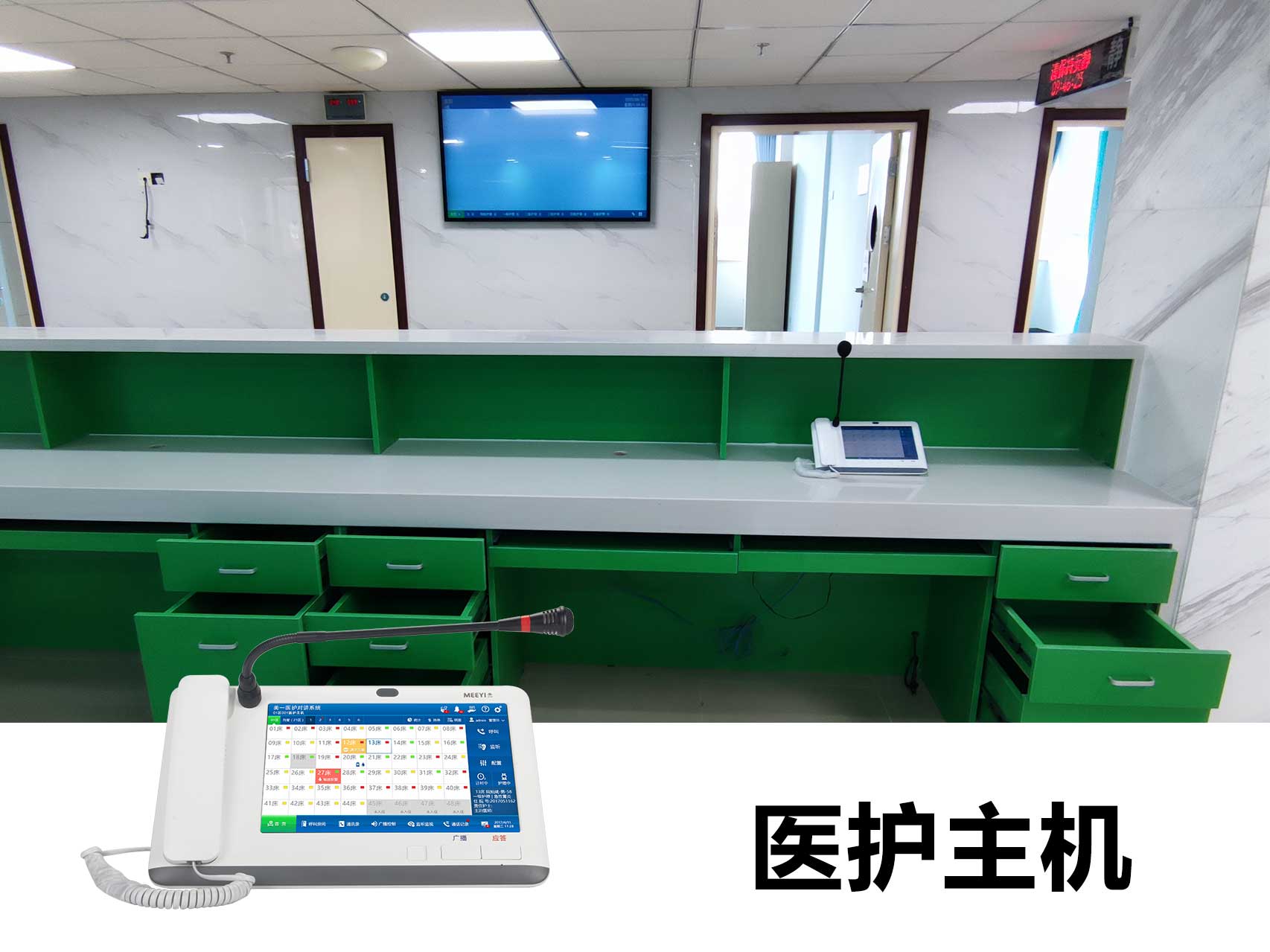 我司自主研發的“美一”智慧醫院智能化系統,包括信息發布、取藥叫號、分診排隊、醫護對講、ICU探視、醫患求助、無線呼叫等(點擊查看完整解決方案),為醫院、養老院、福利院提供智能化解決方案,可為用戶免除多品牌電子產品的繁瑣對接等問題。系統基于我司自主研發的沃爾卡智慧物聯網平臺,支持多類型設備接入,兼容現有各類傳輸網絡,能夠與醫院的HIS系統無縫銜接,數字傳輸、方便快捷。
