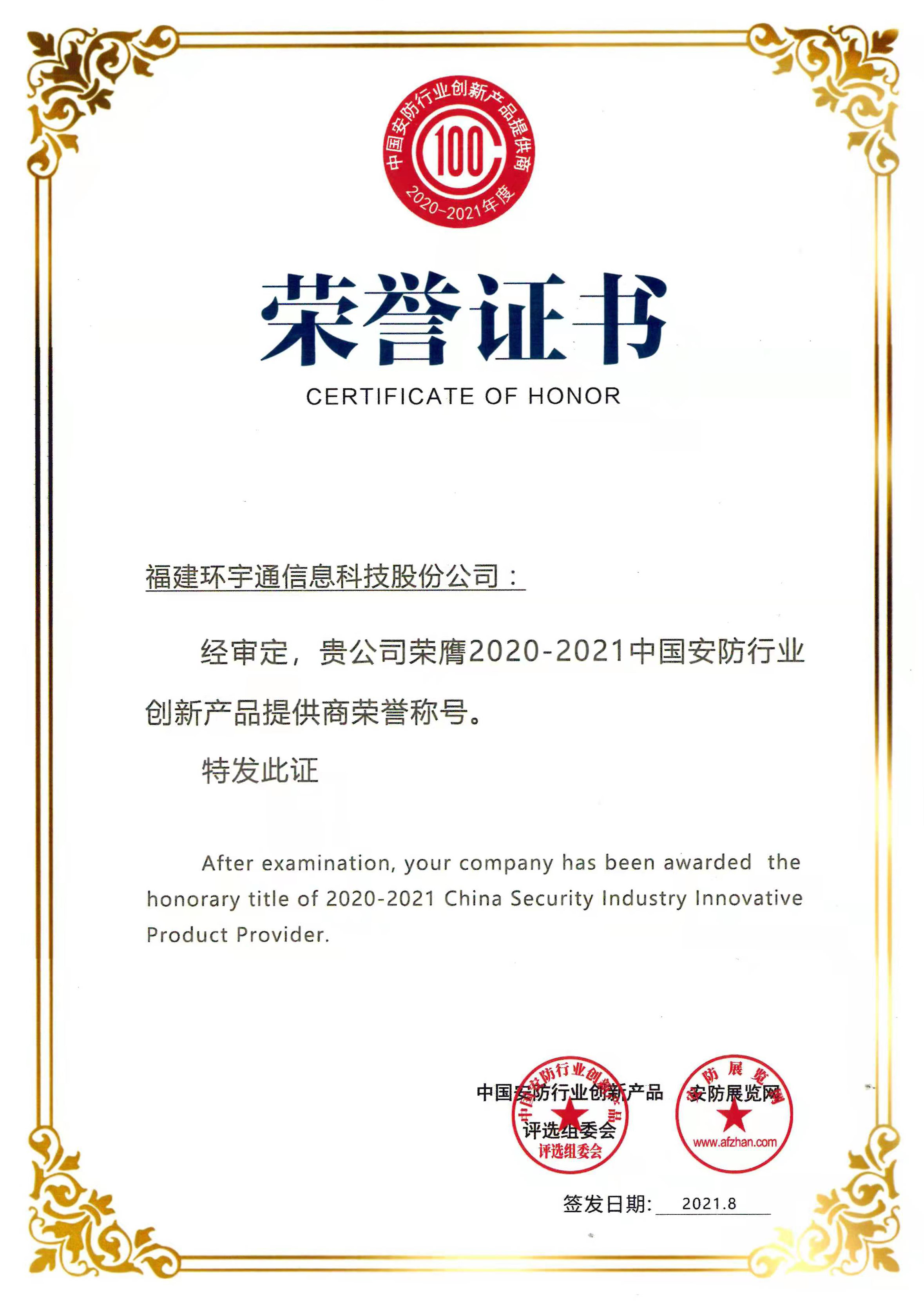 第四屆中國安防創新品牌榮譽稱號